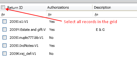 Grids are used to view and select tax returns or templates to include in a batch process. Grid data can be changed in various ways. The following table describes grid functions that can be used in Batch Manager.